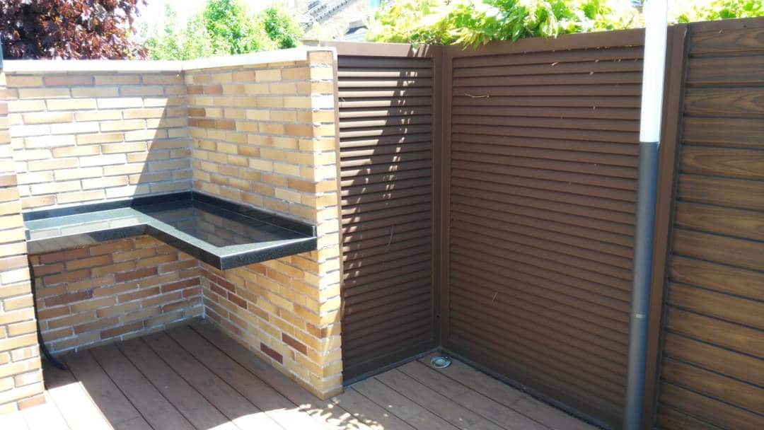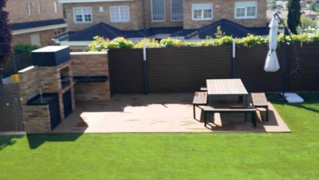 Crear una terraza en el jardín de su casa, teniendo en cuenta y respetando la estética de la barbacoa, protegiendo dicha zona del sol pero dejando libre la salida de humos de la parrilla y donde pudiese colocar mobiliario y darle uso en el buen tiempo.