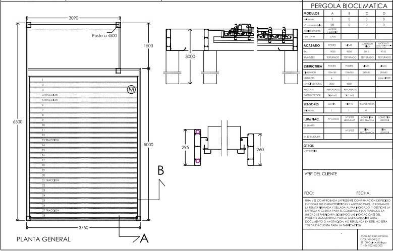 Características de la instalación de la Pérgola Bioclimática de lamas orientables motorizada