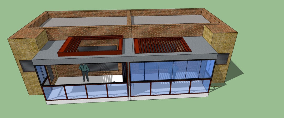 Ubicación de la Pérgola Bioclimática y la Cortina de Cristal: