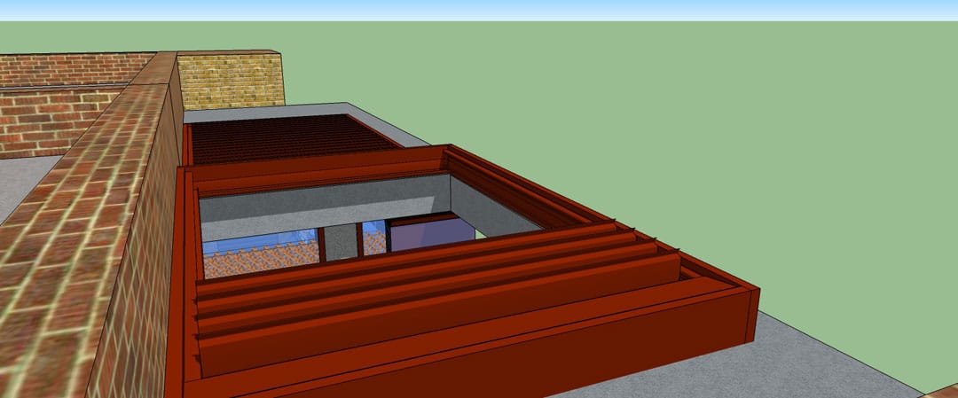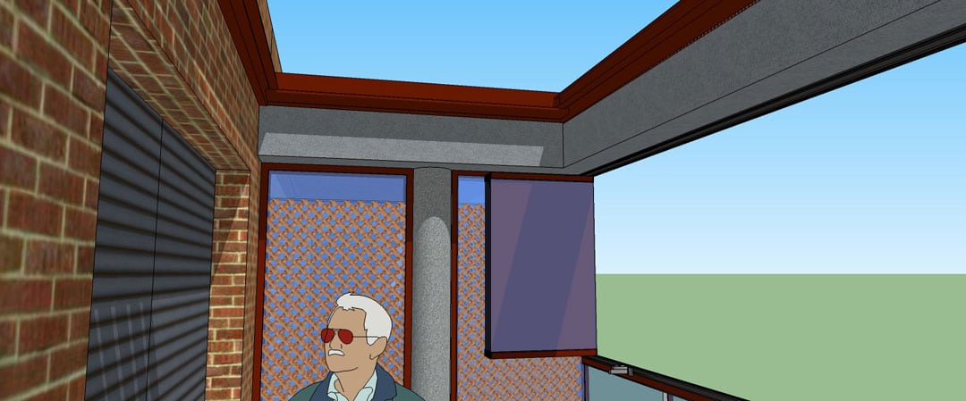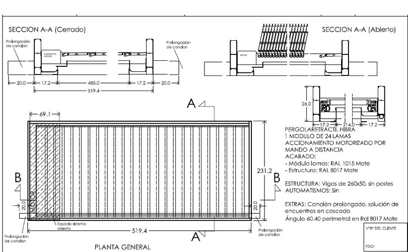 La Pérgola Bioclimática retráctil y el cerramiento con la Cortina de Cristal de este proyecto, como idea inicial, se adaptaría a las dimensiones del hueco de hormigón de la terraza pero, finalmente, se decidió instalar sobre dicho espacio para facilitar el vaciado de pluviales por fuera de la estructura.