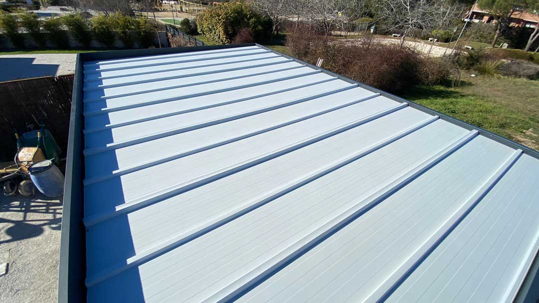 Instalación de Pérgola con Techo Fijo de Panel Sándwich en un Chalet de Torrelodones en Madrid