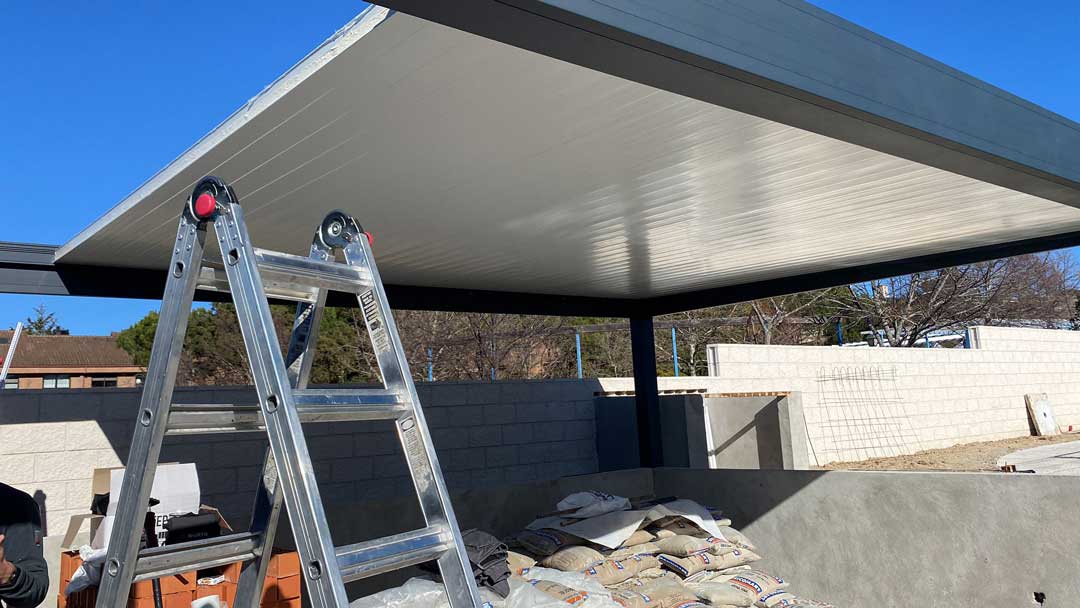 Imágenes de la Instalación de la Pérgola con Techo Fijo Panel Sándwich